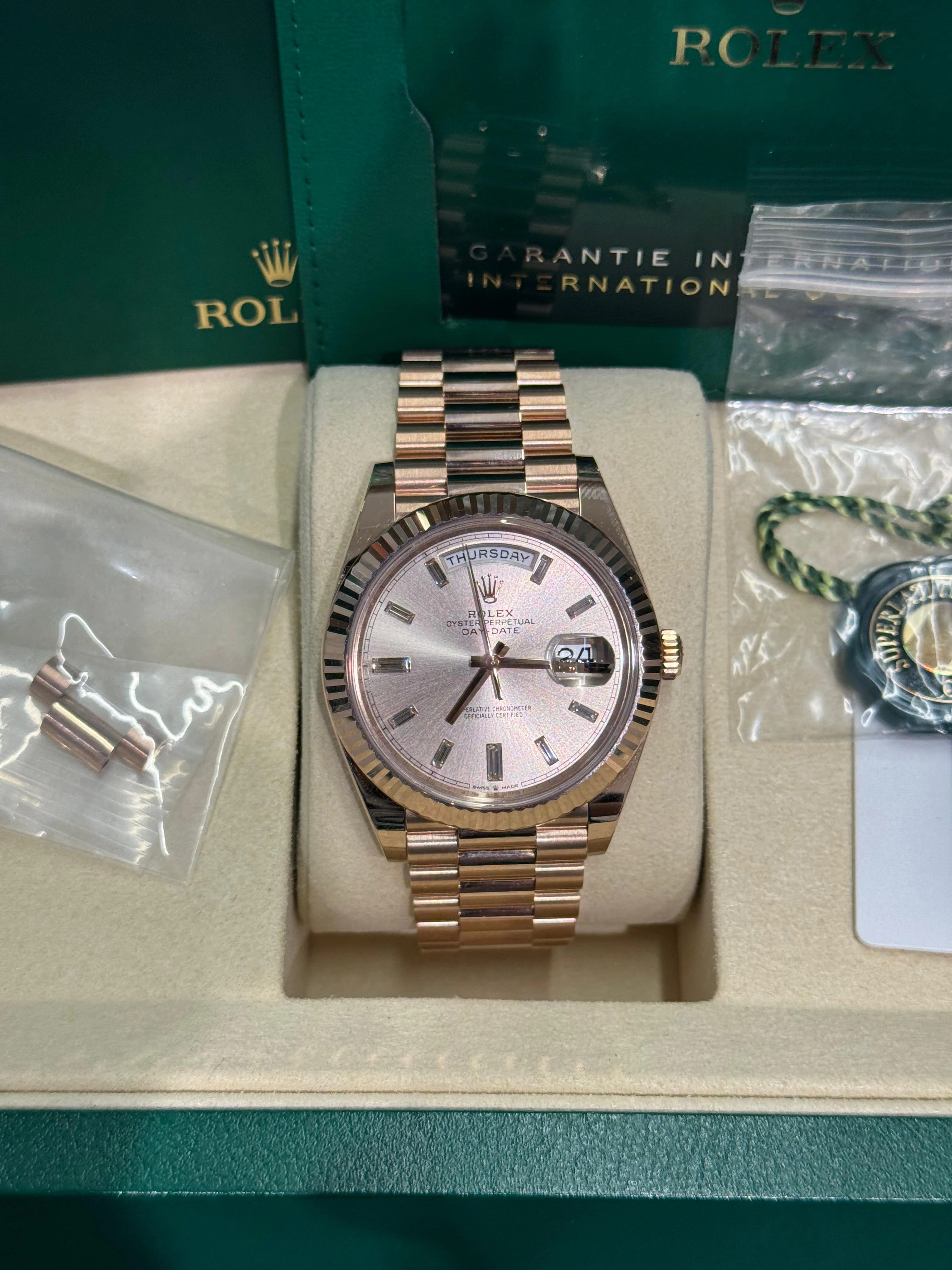 Rolex Presidential Everose Gold Day-Date 40MM - President Bracelet Watch - Sundust Baguette Dial - 228235-0004